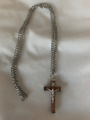 CRUCIFIX NECKLACE - WOOD BLACK RHODIUM CHAIN 76cm (3.5cm x 2cm) |