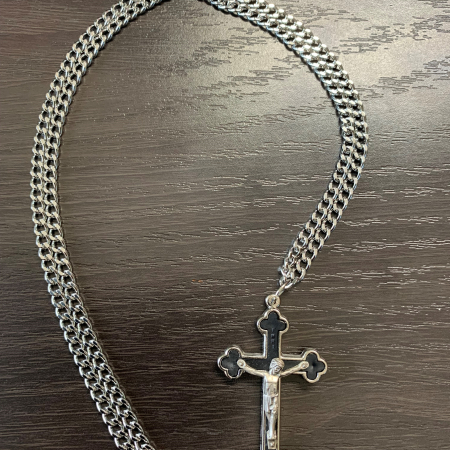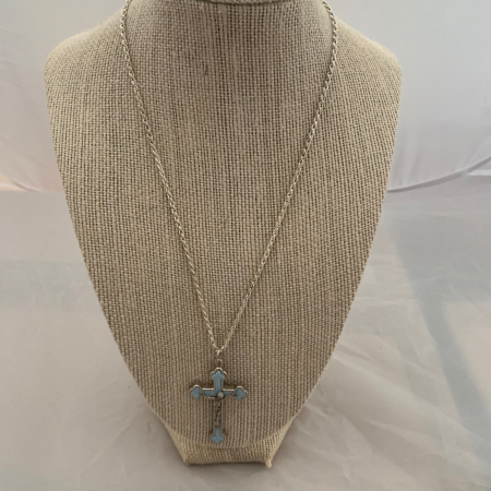 NECKLACE – CRUCIFIX METAL SAPPHIRE ON 44cm Serpentine Chain