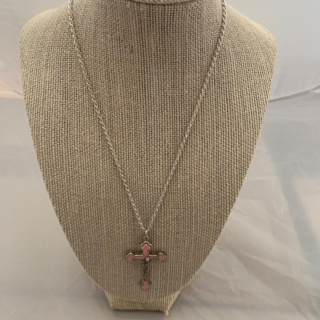 NECKLACE – CRUCIFIX METAL PINK ON 44cm Serpentine Chain