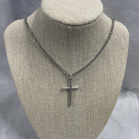 NECKLACE – METAL CROSS SILVER (4cm x 2cm) – Rhodium Chain 72cm