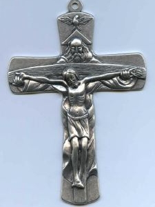 CRUCIFIX – METAL SILVER TRINITY CROSS (10cm x 7.5cm)