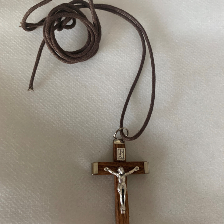 NECKLACE CRUCIFIX – WOOD BROWN 76cm Leather Extender Cord