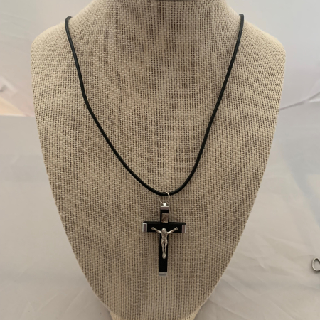 NECKLACE CRUCIFIX – WOOD BLACK 76cm Leather Extender Cord