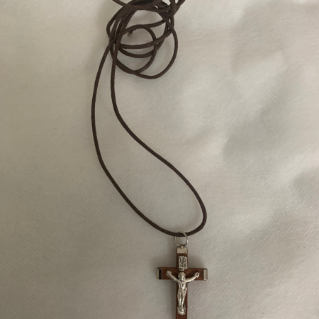 NECKLACE CRUCIFIX – WOOD BROWN CORD (3.5cm x 2cm)