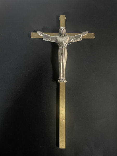 CRUCIFIX – SILVER CRUCIFIX / GOLD CROSS METAL (25cm x 12.5cm) – Handmade in Loreto Italy a traditional region for religious items of the Catholic and Christian faiths.