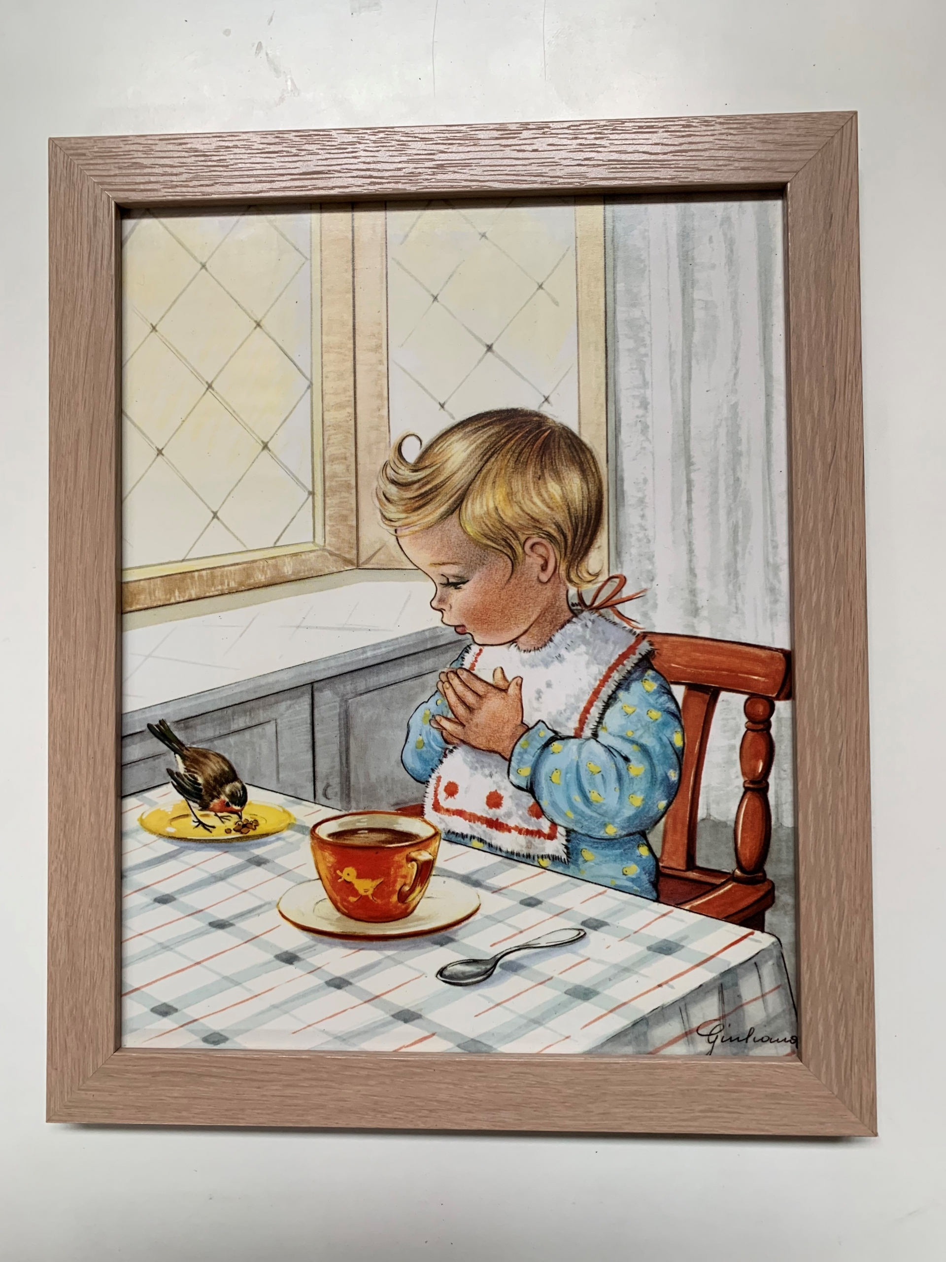 FRAMED PRINT – GIRL PRAYING WITH BIRD (10×8)