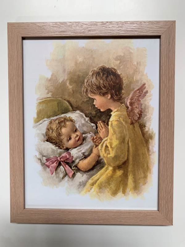 FRAMED PRINT – GUARDIAN ANGEL BABY GIRL PINK BOW (10×8)