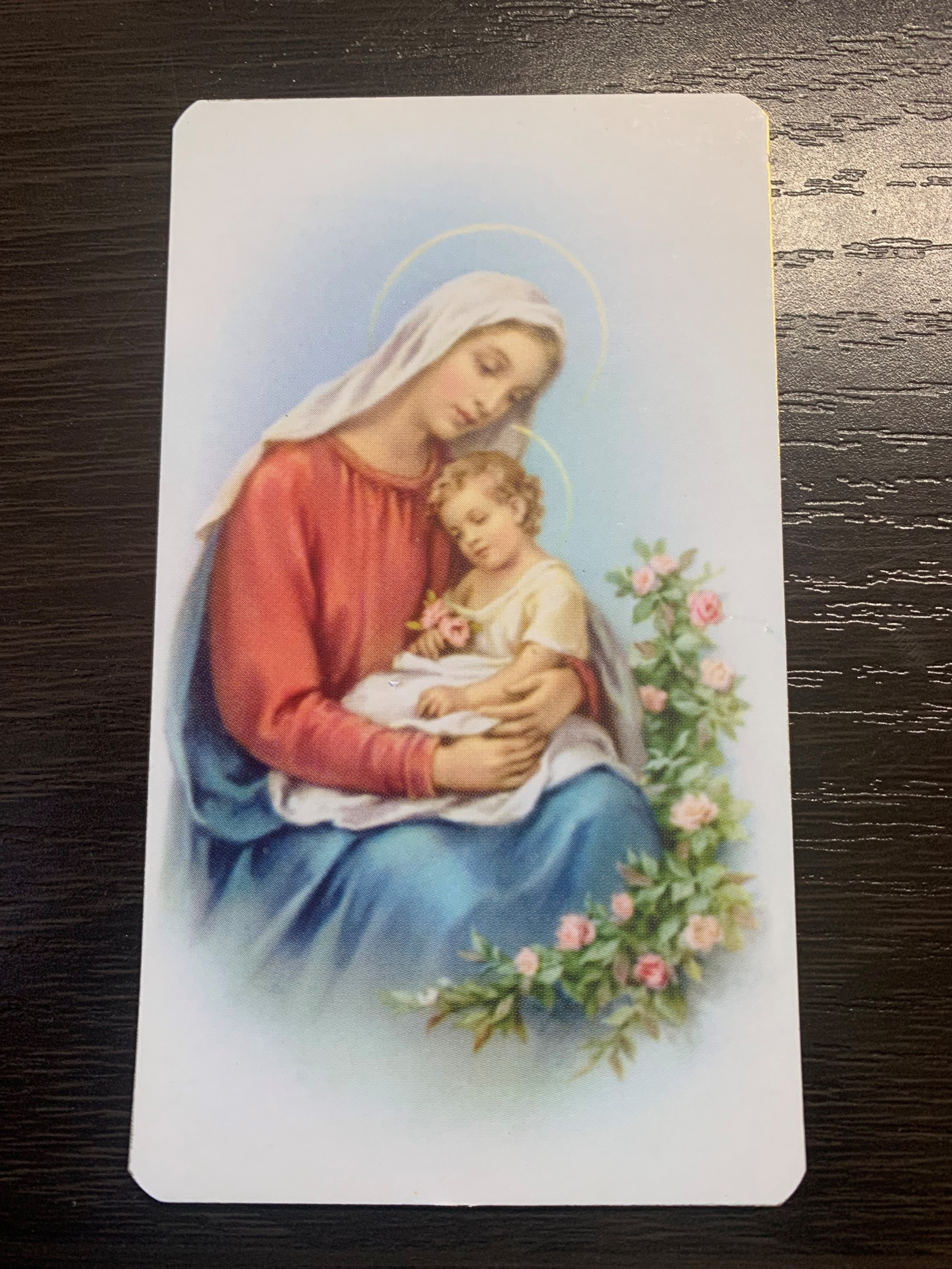 HOLY PICTURE CARD – MOTHER AND CHILD – Made in Italy – Available In Units of 5 – Often used in a gift package for a Mum and her baby