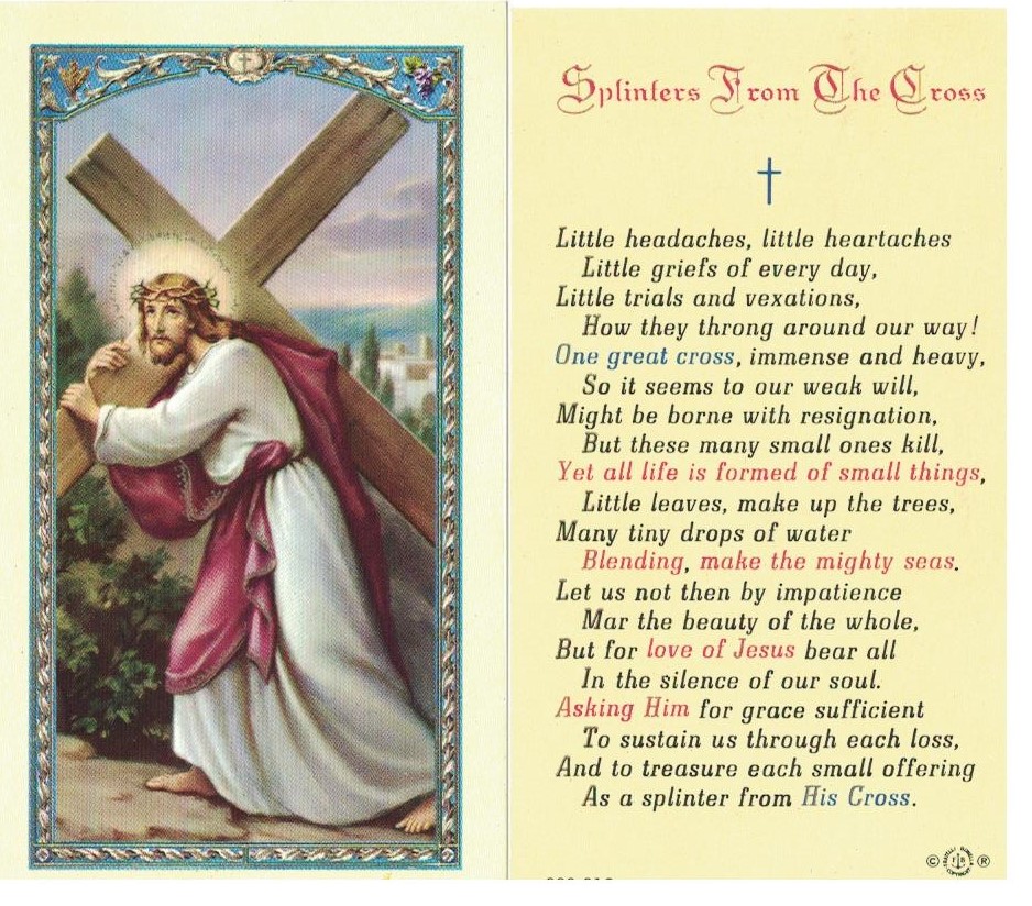HOLY PICTURE CARD SPLINTERS FROM THE CROSS – Made in Italy – Minimum Order 5 Cards, please order in units of 5 thereafter eg 10, 15, 20 etc