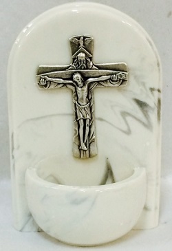 HOLY WATER FONT CRUCIFIX – Made and Designed in Loreto Italy – 90mm x 60mm Marble Base