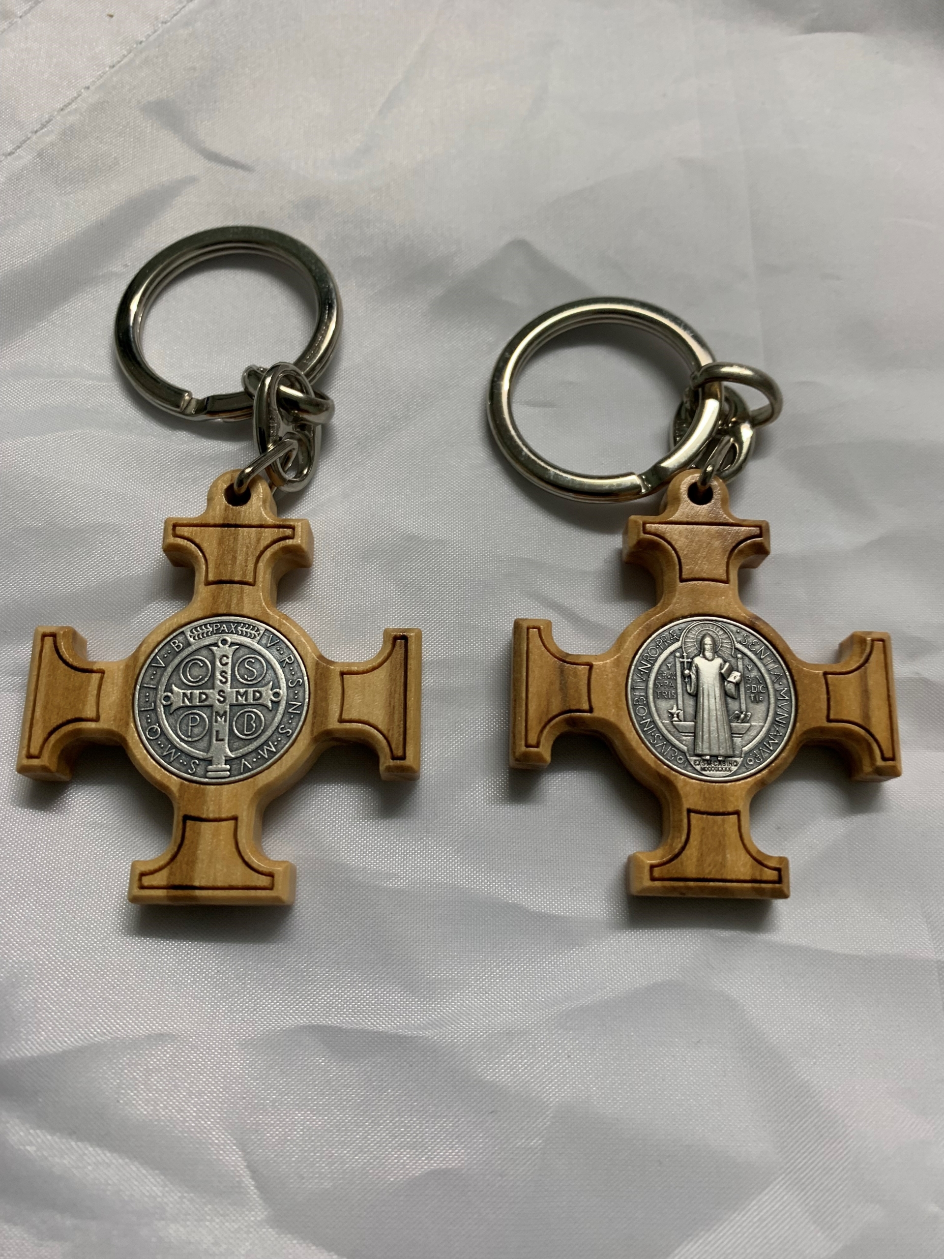 Key Ring – St Benedict Olive Wood – Made In Italy