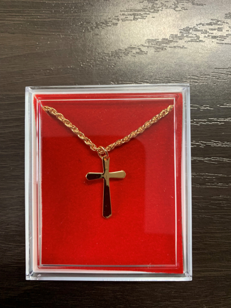 Gold Cross on Chain – Cross 25mm x 15mm (Wider Cross) – Gold Serpentine Chain 60cm