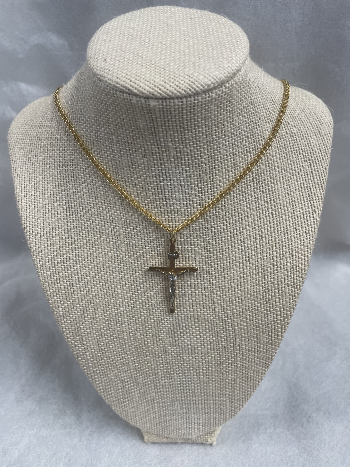 CRUCIFIX – METAL ON GOLD CHAIN