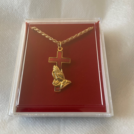 NECKLACE – CROSS / PRAYING HANDS – GOLD CHAIN (Cross 26mm x 15mm – Chain 60cm)