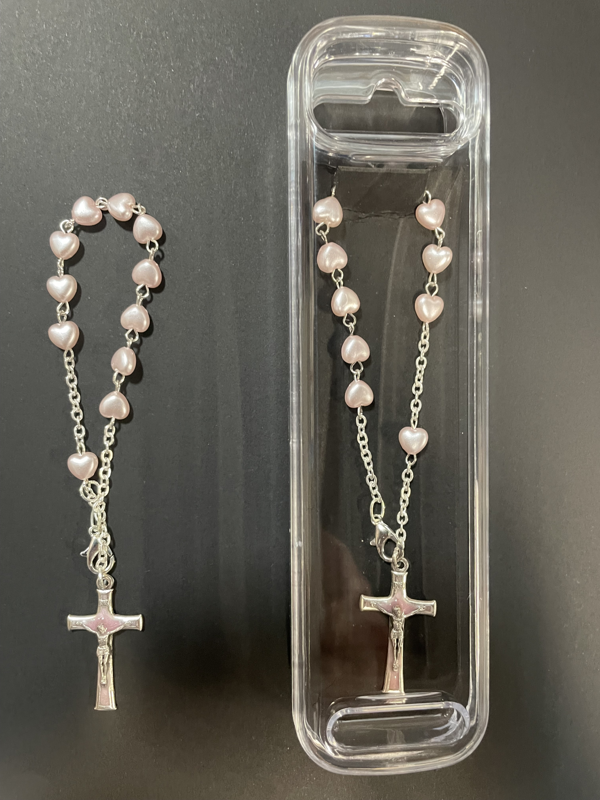 ROSARY BRACELET – PINK HEART CROSS