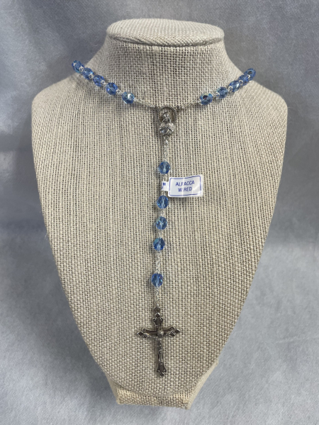 Rosary – Premium 7mm Crystal Sapphire Bead – Designed and Handmade in Loreto Italy – Boxed