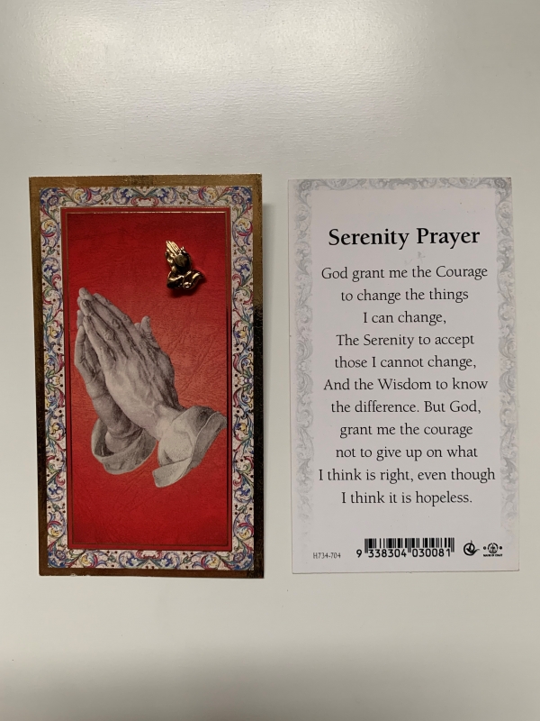 CARD – SERENITY PRAYER WITH PRAYING HANDS LAPEL PIN