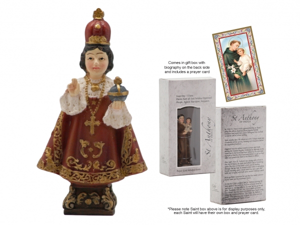INFANT OF PRAGUE BOXED STATUE – SIZE: 87mm WITH PRAYER CARDS