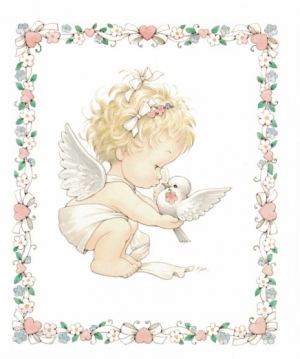 PRINT – BABY ANGEL WITH DOVE (GIRL) (10×8)