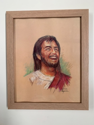 FRAMED PRINT – LAUGHING JESUS (Artist Nunez Segura) (10×8)